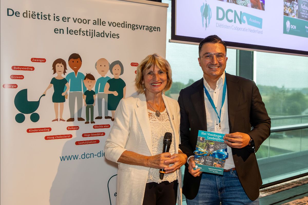 Op de DCN Academy reikte Willy Gilbert het eerste exemplaar van het nieuwe Voedings- en Leefstijlboek uit aan Dr. Mesut Savas. Mesut Savas sprak over obesitasmedicatie, waarvoor hij in de evaluatie veel lovende woorden kreeg. Mesut is internist in opleiding in het ErasmusMC. Hij is een bevlogen arts met enorm veel kennis en een gedreven science communicator